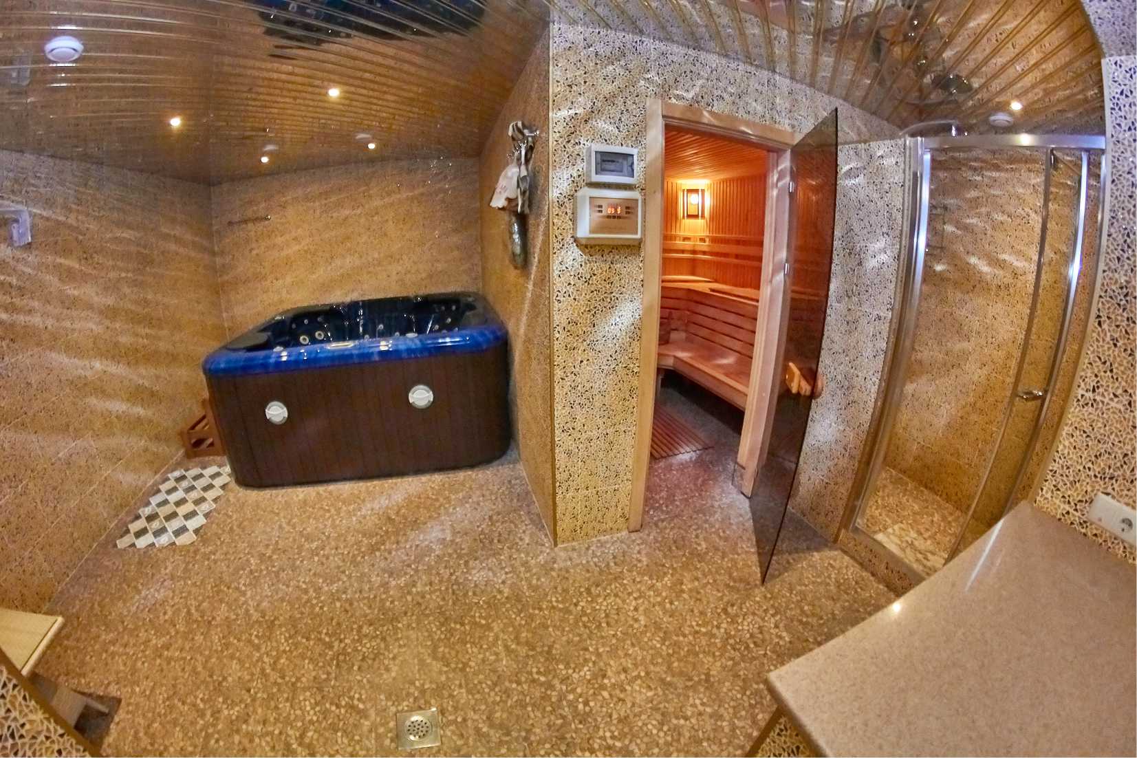 Есть часть посуды и приборов (по желанию уберем). В квартире современная, электрическая сауна с натуральной деревянной вагонкой, электрокотлом с каменкой, помещение парной на 3-5 человек, радом отдельный душ. Зал гидромассажа - установлена джакузи на три посадочных места. В помещение данного санузла установлена стиральная машина автомат. Есть еще два санузла!