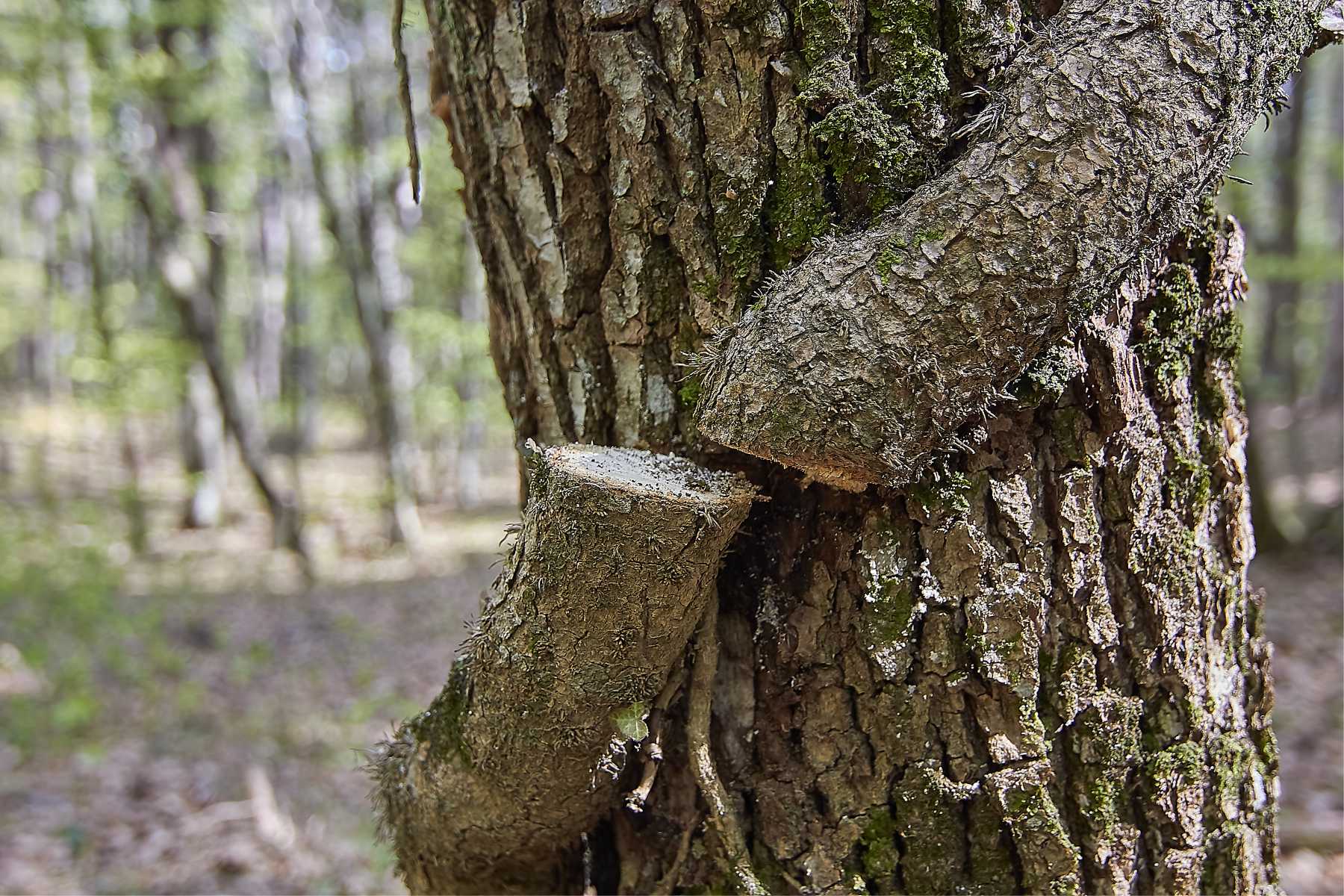 Одной из известных достопримечательностей этой местности — служит уникальное дерево, Крымская сосна с семью стволами, выросшими на едином стволе-основании в форме арфы, или в форме ладони, семь пальцев которой направлены вверх. Во время нашей прогулки мы не попали к этому чуду, т.к. оно находится у самого подножья Могаби, чуть выше озер. Вот координаты места 44.470778, 34.125792 - найти его несложно.