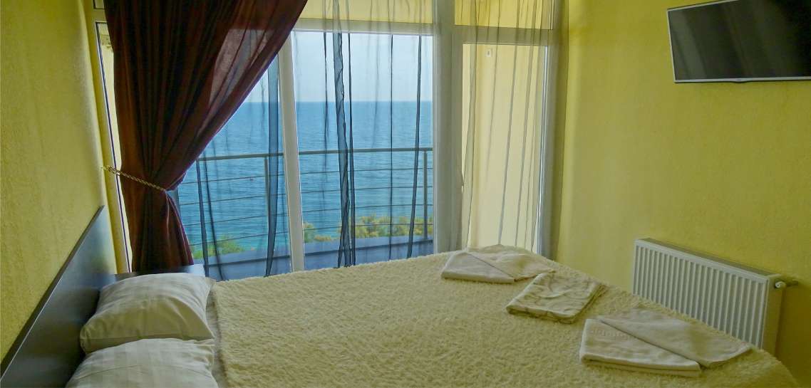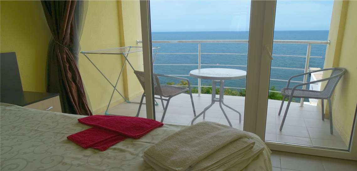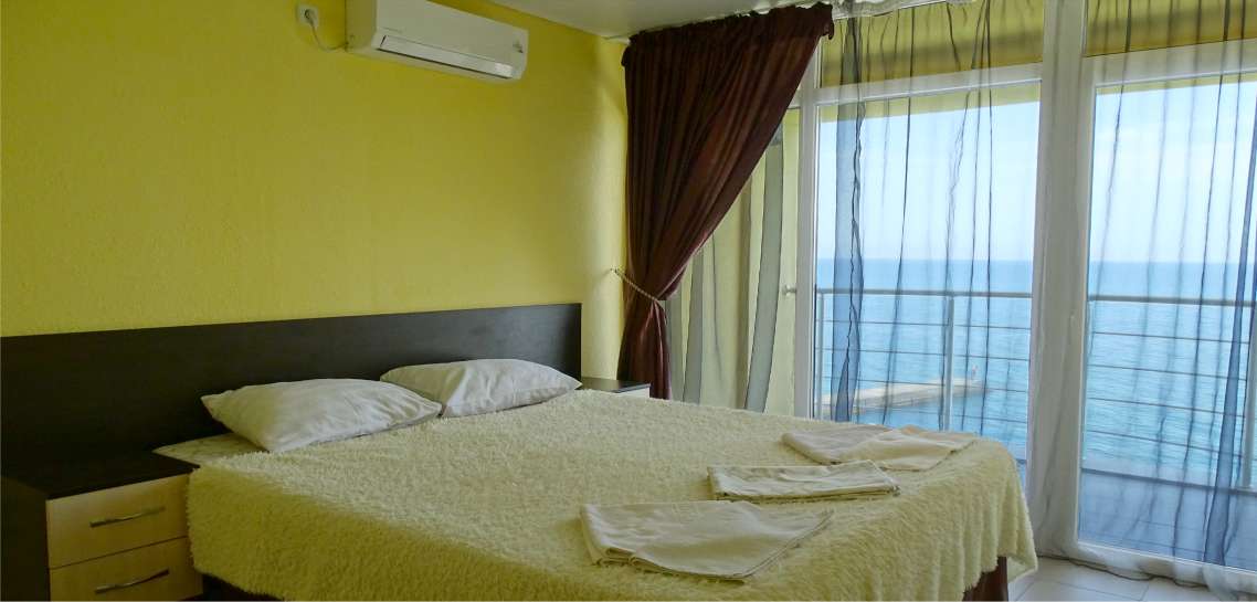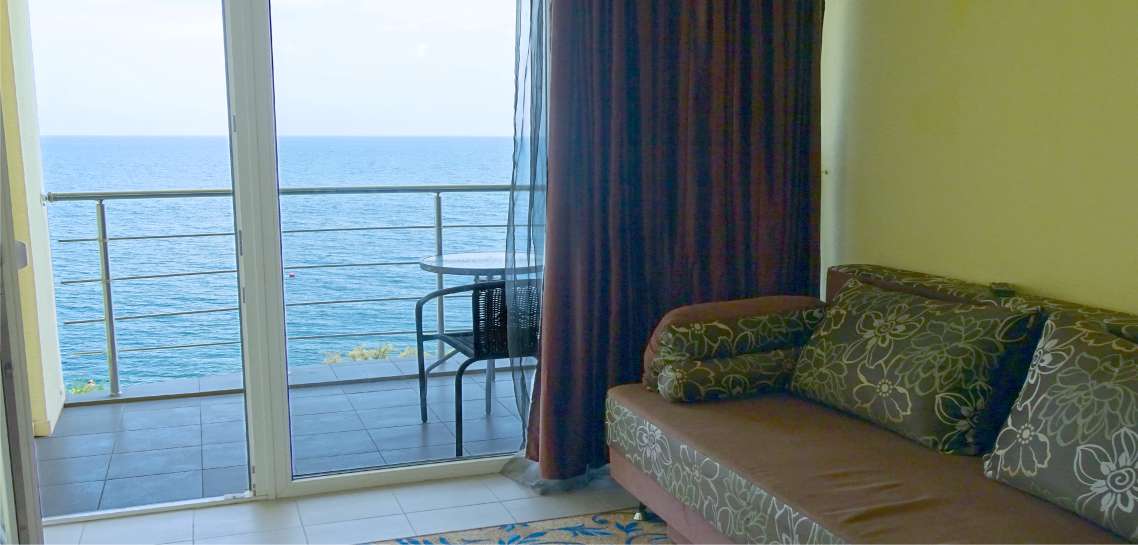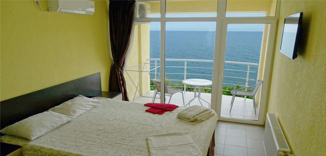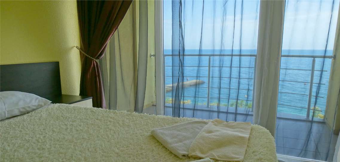 Выбирая наш отель для отдыха на Южном Берегу Крыма — туристы получают комфортабельные, видовые номера в первой береговой линии по цене частного сектора, а также качественное и вкусное питание в фирменном кафе, услуги трансфера из Симферополя платно и бесплатно с вокзала Алушты, а также возможность пользоваться пляжными аттракционами со скидкой 10%. Лежак на целый день стоит всего 100₽