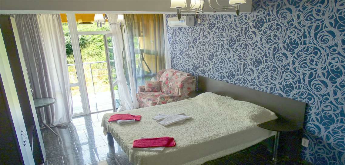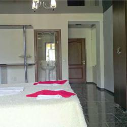 Все номера оборудованы собственным санузлом, совмещенным с душевой кабиной (горячая вода из бойлера круглосуточно), кондиционером, современным телевизором с пакетом ТВ-каналов, бесплатным WiFI интернетом, зеркалом, шкафом или вешалкой, прикроватными тумбами и трюмо, а также балконом с качественной уличной мебелью.
