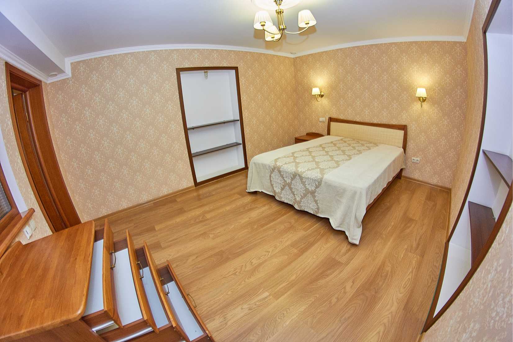 Прекрасная отделка, качественные материалы, грамотно подобранная мебель и огромное пространство для жизни. Две отдельные спальни с качественным ламинатом и мебелью из массива дорогих пород дерева (двуспальная кровать, комод, шкаф и ТВ), гостевая комната с угловым раскладным диваном и трехстверчатым шкафом-купе, огромный зал с качественным ковровым покрытием и креслами. Большая, полностью оборудованная кухня со встроенной техникой: варочная панель, холодильник, морозильная камера, СВЧ, духовой шкаф, а так же раковина, верхний и нижний гарнитур, Г-образная столешница с приятным, водостойким покрытием.
