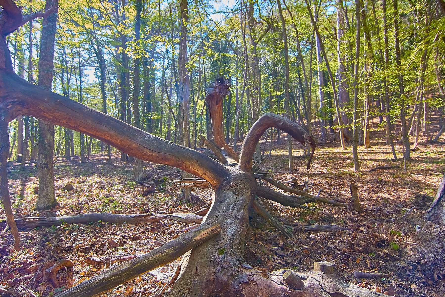 Лес сам по себе — просто прекрасен, а крымский лес на Могаби прекрасен вдвойне. Неместному глазу видится что оказался в субтропических джунглях. Только взгляд в кроны деревьев приземляет — видны шапки вековых кедров, мы в Крыму :-) Во время своей прогулки, мы обратили внимание на плющ, увивший деревья и разросшийся до толщины ствола диаметром с кулак. На наш взгляд, плющ губит деревья на которые он забрался, ведь множество мертвых лиственных деревьев стоят напрочь увиты им. Некоторые сосны и кедры поросли плющем до середины ствола. Плюща, забравшегося в крону кедру мы не встретили, видать силенок не хватает? Зато в некоторых местах, вдоль дороги по которой шли, встретили множество распиленных стволов плюща, захватившего дерево. Кто-то брал с собой на прогулку ножовку, зачем - спасать деревья от плюща? (приглашаем к обсуждению в комментариях)